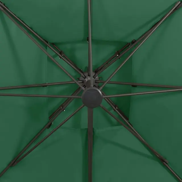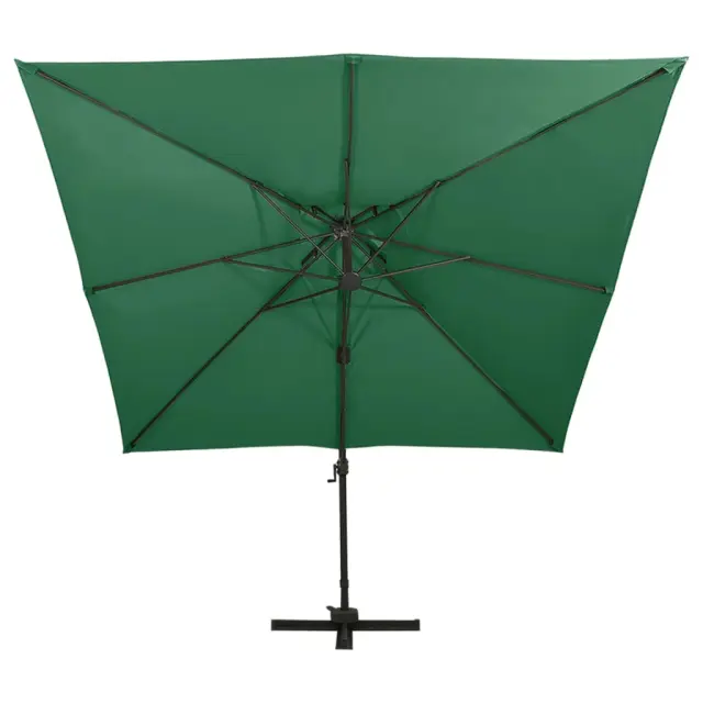 Ta vrtni senčnik je odličen za zagotavljanje sence in zaščite pred škodljivimi UV žarki. Senčnik je izdelan iz UV-odpornega in barvno obstojnega poliestra, zato zagotavlja optimalno zaščito pred soncem in preprosto čiščenje. Ima močno križno osnovo, ki zagotavlja dodatno stabilnost. Ekskluziven dizajn tega senčnika omogoča nagibanje in obračanje za 360 stopinj, da boste lahko blokirali sonce. Močan aluminijast drog z 8 trpežnimi palicami zagotavlja, da je senčnik zelo stabilen in trpežen. Ta vrtni senčnik lahko preprosto odpirate in zapirate s pomočjo ročičnega mehanizma. Dvojna streha zagotavlja boljše zračenje. Prosimo, upoštevajte, da priporočamo zaščito tkanine strehe z vodoodpornim sprejem, če je izpostavljena močnemu deževju.Barva senčne ponjave: ZelenaMaterial: Blago s PA oblogo, aluminij s prašnim premazomCelotne dimenzije: 300 x 300 x 258 cm (D x Š x V)Velikost križne osnove: 100 x 100 cm (D x Š)Velikost droga: 7 x 5 cm (D x Š)Z odprtino za pretok zraka in sistemom za odpiranje s pomočjo ročiceDizajn za nastavitev naklona in vrtenje za 360 stopinjVključuje 8 aluminijastih palicZ dvojno strehoPotrebno sestavljanje: Da 312370
