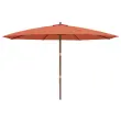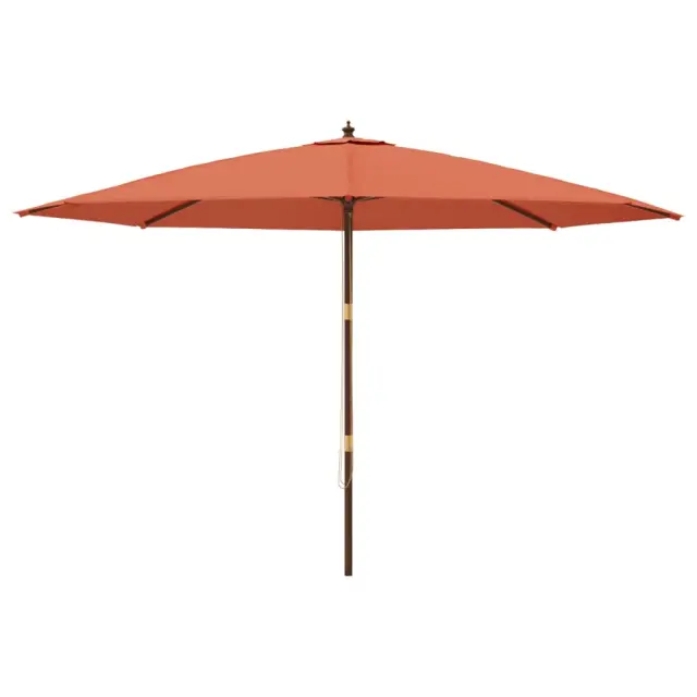 Ta vrtni senčnik je popoln za zagotavljanje sence in zaščito pred škodljivimi UV žarki. Trpežen material: Senčnik je izdelan iz poliestra, ki ščiti pred UV-žarki in ne bledi, zato zagotavlja optimalno zaščito pred soncem in je enostaven za čiščenje.Stabilen okvir: Zaradi močnega droga iz trdega lesa s trpežnimi rebri je vrtni dežnik zelo stabilen in vzdržljiv.Vetrovnik: Zaradi dodatnega kosa tkanine na vrhu senčnika se veter in toplota odvajata, zato je senčnik odlična izbira za druženje na prostem.Enostavno upravljanje: Zaradi sistema z dvojno jermenico je mogoče zunanji senčnik preprosto odpreti in zapreti. Opomba:Ta izdelek ni 100 % vodotesen. Priporočamo, da izdelek zaščitite z vodoodpornim razpršilom za boljšo vodoodpornost.Barva: TerakotaMaterial okvirja: Trden les v barvi tikovine, laminiran bambusMaterial prevleke: Tkanina (100 % poliester)Celotne dimenzije: 400 x 273 cm (premer x v)Premer palice: 38 mmZ odprtino za pretok zrakaVključuje 8 palicPonaša se z dvojnim škripcem za odpiranje in zapiranjePotrebno sestavljanje: Da 363180