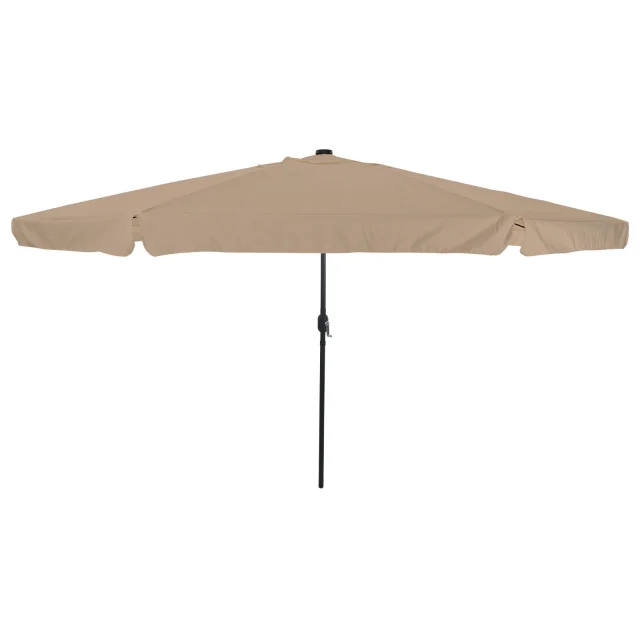 vidaXL vrtni senčnik z LED lučkami ø395x245 cm taupe