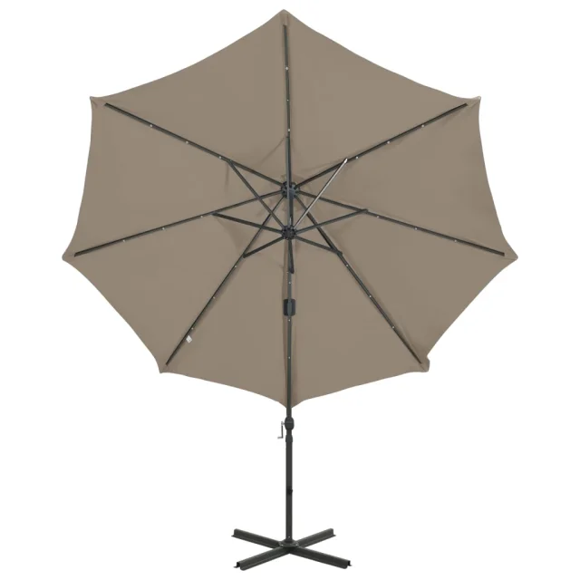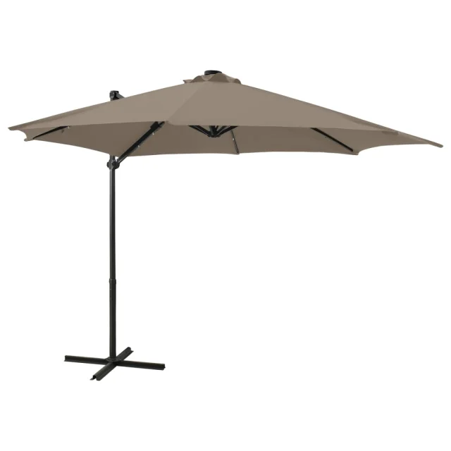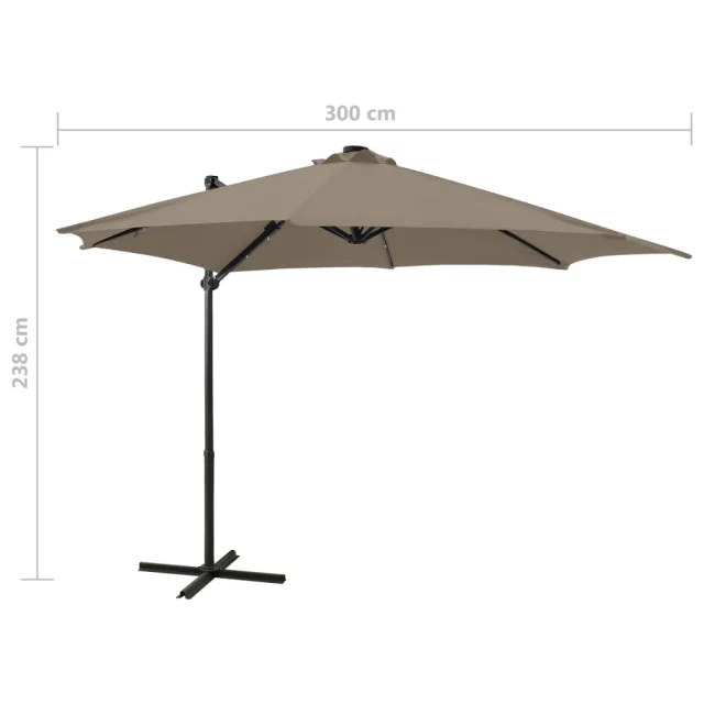 vidaXL Vrtni senčnik z LED lučkami taupe 300 cm