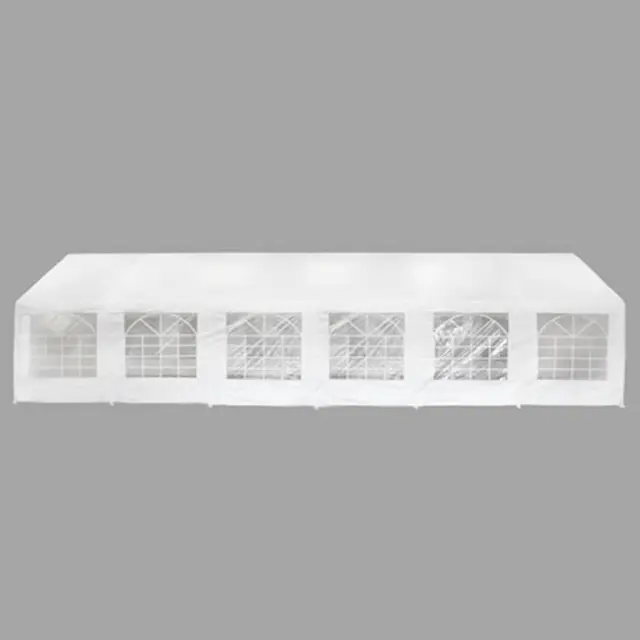 Ta šotor za dogodke bo idealen za vsak zunanji dogodek, kot so razstave, poroke, zabave, pikniki, kampiranja, festivali itd. Lahko ga namestite tudi na svoje dvorišče, kjer bo služil kot velik senčni prostor za vašo družino in prijatelje. Šotor je dovolj trpežen, zato je primeren za celoletno uporabo na prostem. Streha in stranski paneli šotora za dogodke so izdelani iz 100 % PE materiala ter so odporni na UV in vodo. Ima 2 stranici s 6 okrasnimi okni in 2 stranici z vrati, od katerih ima vsaka zadrgo in vhod za enostavno vstopanje. Ta okvir je izdelan iz jekla, odpornega na rjavenje, zato je zelo vzdržljiv. Postavitev je zelo preprosta. Paket vsebuje streho, štiri stranske panele, jeklen okvir in vezne elemente! OPOMBA: Ta izdelek se ne sme NIKOLI uporabljati v slabem vremenu, npr. ob močnem vetru, nalivu, snegu, nevihtah itd.Okvir:Material: JekloPremer cevi: 38 mmEnostavna montažaStreha in stranice:Barva: BelaMaterial površine šotora: 160 g/m² PEMaterial stranskega panela: 140 g/m² PEPaket vsebuje:2 Stranici 6 x 2 m2 Panela 12 x 2 m1 Streha1 Okvir z veznimi elementiTkanina: Polietilen: 100% 271798