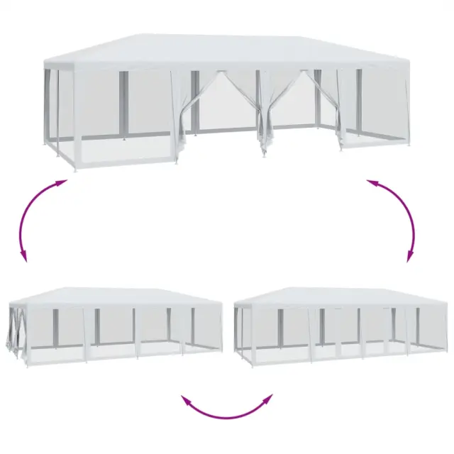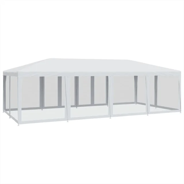 vidaXL Vrtni šotor s 12 mrežastimi stranicami bel 8x4 m HDPE
