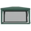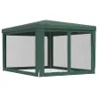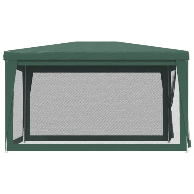 Ta super kul vrtni šotor ima trpežen okvir s prašnim premazom, vodoodporno streho in štiri mrežaste stranice. Je idealno zavetje pred soncem. Vrhunski material: Ta paviljon je izdelan iz polietilena visoke gostote (HDPE), ki vas ščiti pred sončno svetlobo in prepušča dovolj vetra. HDPE je posebej obdelan, zato je tudi vodoodporen.Železen okvir: Železen okvir tega velikega šotora zagotavlja trdnost in stabilnost.Praktična zasnova: Šotor ima 4 mrežaste stranice, ki vas ščitijo pred nadležnimi žuželkami. Ena od stranic ima zadrgo za vstop in enostaven dostop.Široka uporaba: Ta prireditveni šotor je idealna izbira za številne dogodke na prostem, kot so predstave, poroke, zabave, pikniki, festivali itd. Opomba:Ta izdelek se ne sme NIKOLI uporabljati v slabem vremenu, npr. ob močnem vetru, nalivu, snegu, nevihtah itd.Vsakemu izdelku je priložen priročnik za enostavno sestavljanje.Barva: ZelenaMaterial: HDPE (polietilen visoke gostote) s premazom, železo s prašnim premazomDimenzije: 297 x 396 x 246 cm (D x Š x V)Višina nadstreška, od tal: 2 mOdporno na UVVodoodporno4 mrežaste stranice, ena od njih ima zadrgo za vhodPaket vsebuje:1 x Šotor1 x Vrv8 x Zatič 319233