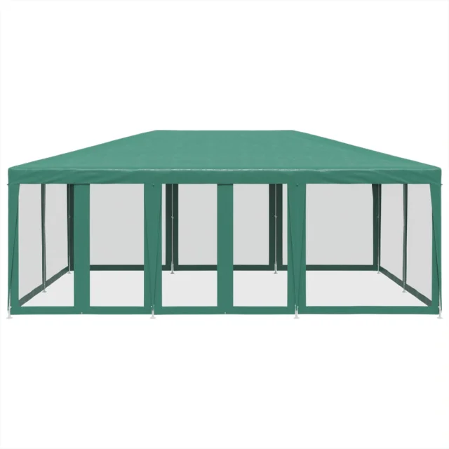 vidaXL Vrtni šotor z 10 mrežastimi stranicami zelen 6x4 m HDPE