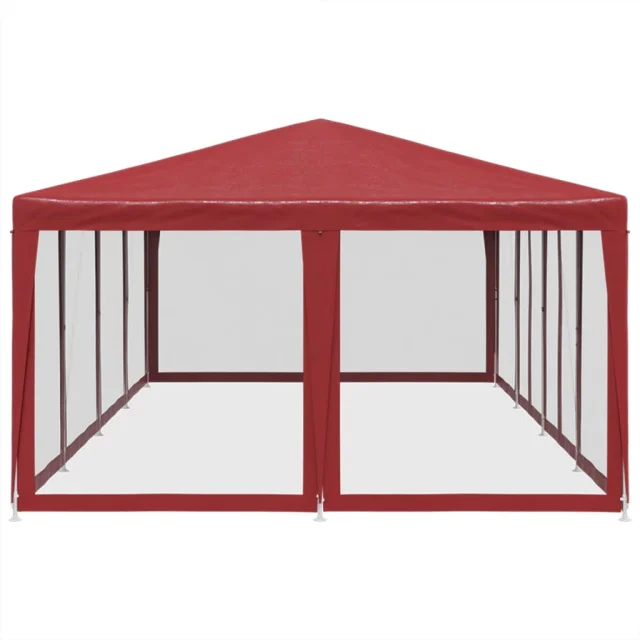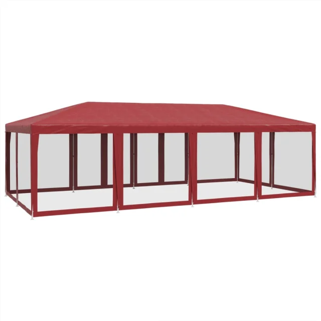 vidaXL Vrtni šotor z 12 mrežastimi stranicami rdeč 8x4 m HDPE