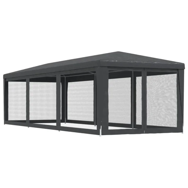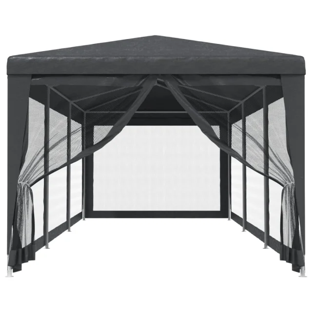 Ta super kul vrtni šotor ima trpežen okvir s prašnim premazom, vodoodporno streho in osem mrežastih stranic. Je idealno zavetje pred soncem.