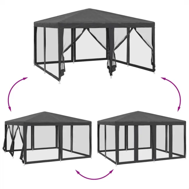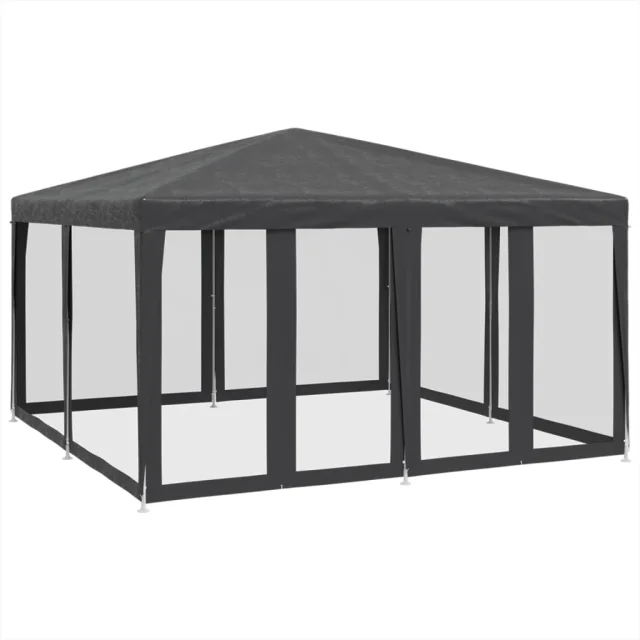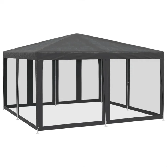 vidaXL Vrtni šotor z 8 mrežastimi stranicami antracit 4x4 m HDPE