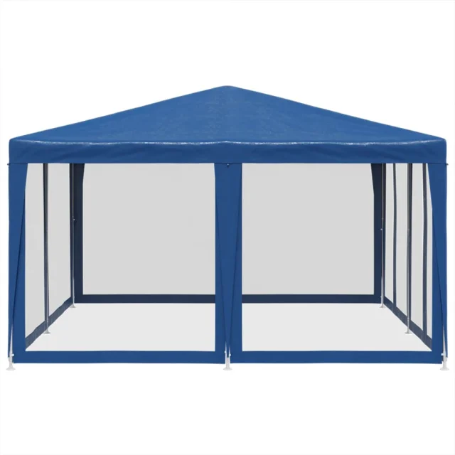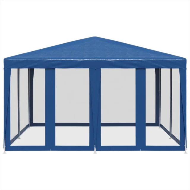 vidaXL Vrtni šotor z 8 mrežastimi stranicami moder 4x4 m HDPE