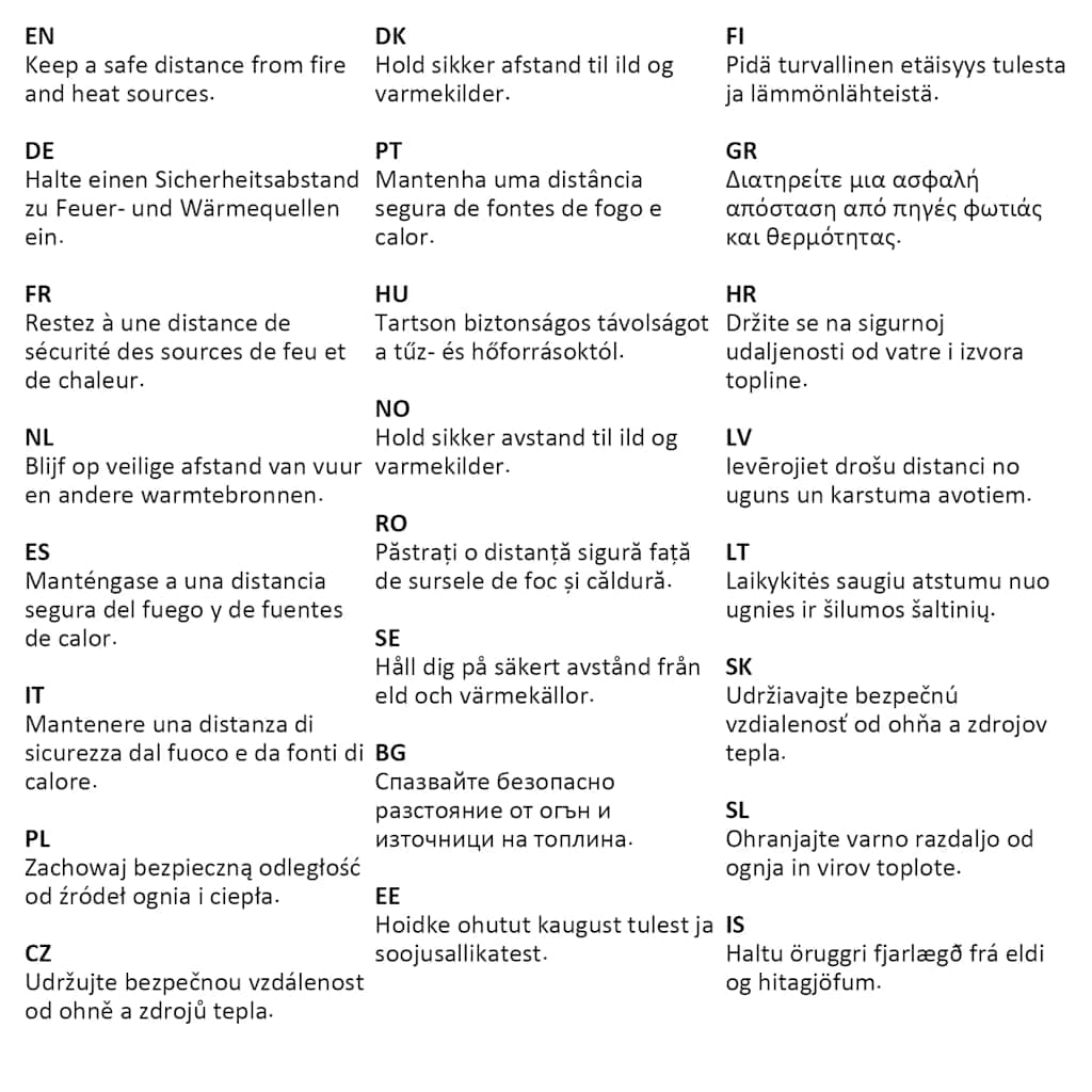 Ohranjajte varno razdaljo od ognja in virov toplote.