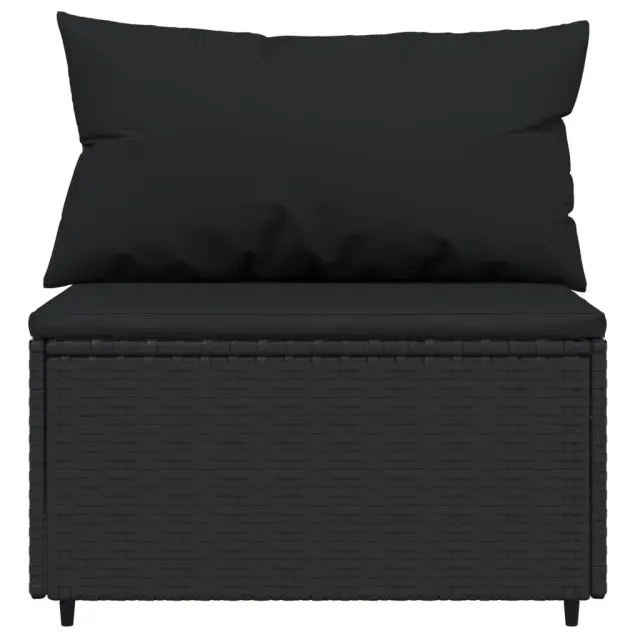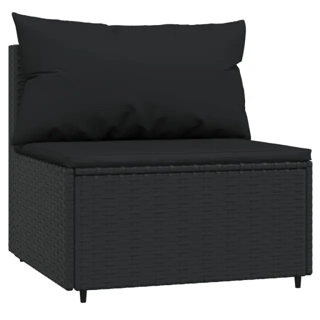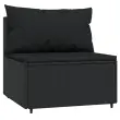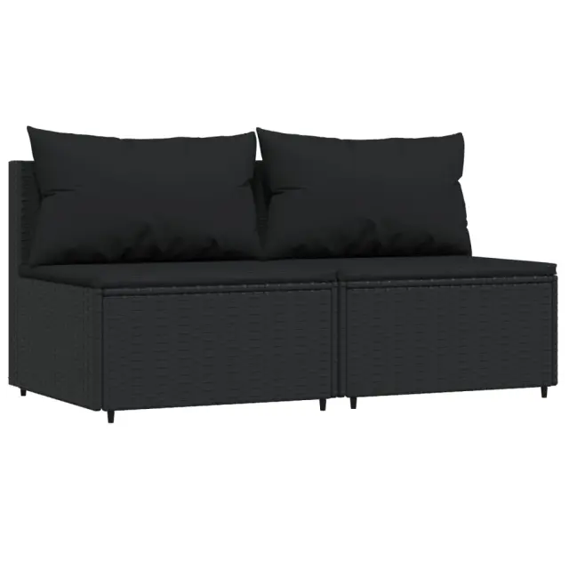 vidaXL Vrtni sredinski kavč z blazinami 2 kosa črn poli ratan