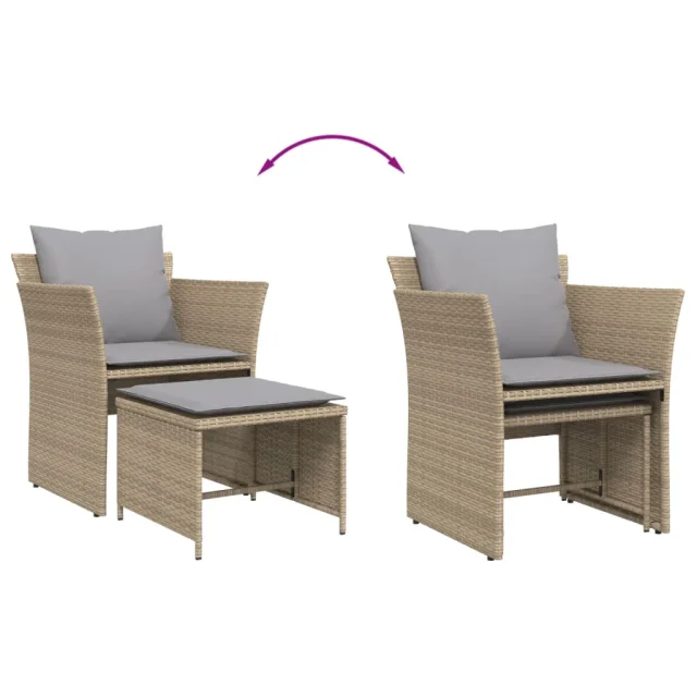vidaXL Vrtni stol s stolčkom za noge bež poli ratan