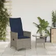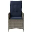 vidaXL Vrtni stol z naslonjalom in blazinami siv poli ratan