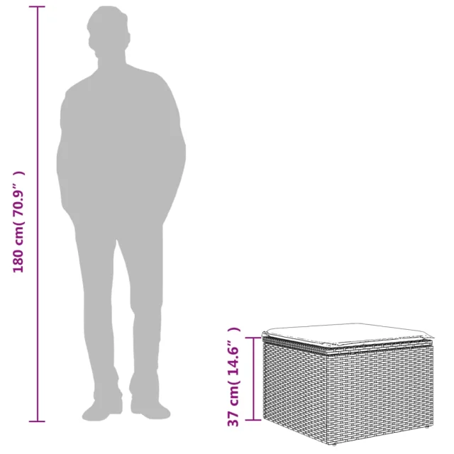 vidaXL Vrtni stolček z blazino svetlo siv 55x55x37 cm poli ratan