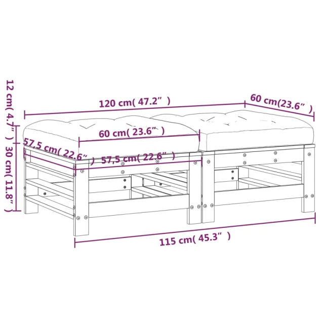 vidaXL Vrtni stolček za noge z blazino 2 kosa impregnirana borovina