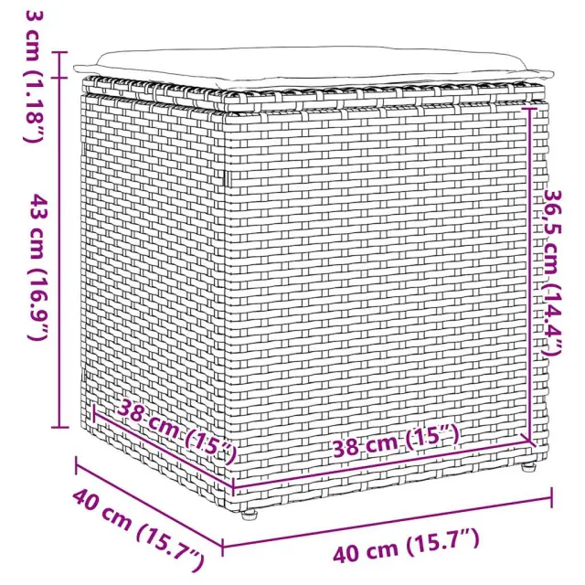 vidaXL Vrtni stolčki z blazinami 2 kosa Rjava 40x40x43 cm Poly Rattan