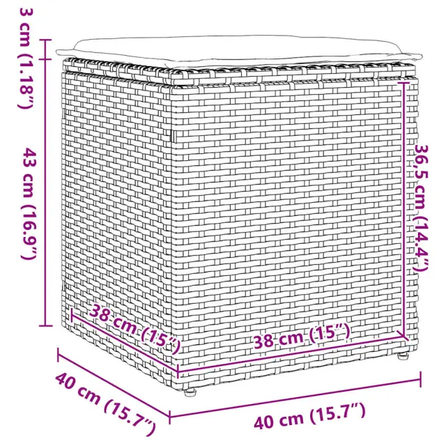 vidaXL Vrtni stolčki z blazinami 2 kosa Bež 40x40x43 cm poli ratan