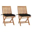 vidaXL Vrtni stoli 2 kosa s črnimi blazinami trdna tikovina