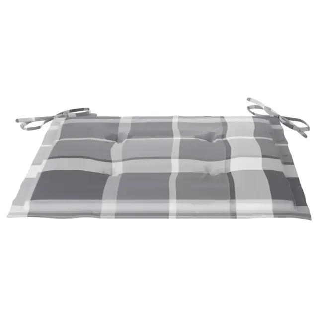 vidaXL Vrtni stoli 2 kosa s sivimi karo blazinami trdna tikovina