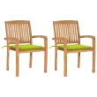 vidaXL Vrtni stoli 2 kosa s svetlo zelenimi blazinami trdna tikovina