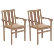 Te zunanje stole lahko zložite enega na drugega in tako prihranite prostor, ko niso v uporabi. Izdelek ima čudovit zaključek, ki daje lesu toplo barvo. Priložene sedežne blazine zagotavljajo izjemno udobje med sedenjem.