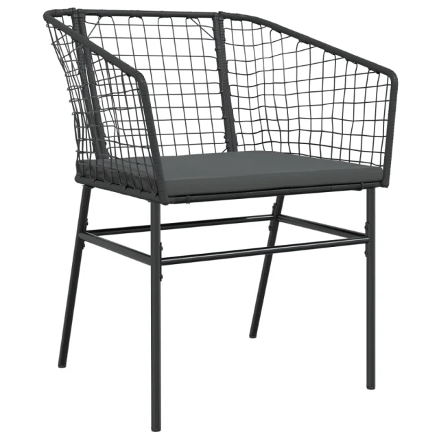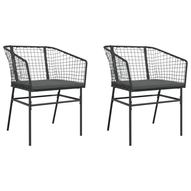 vidaXL Vrtni stoli 2 kosa z blazinami črn poli ratan