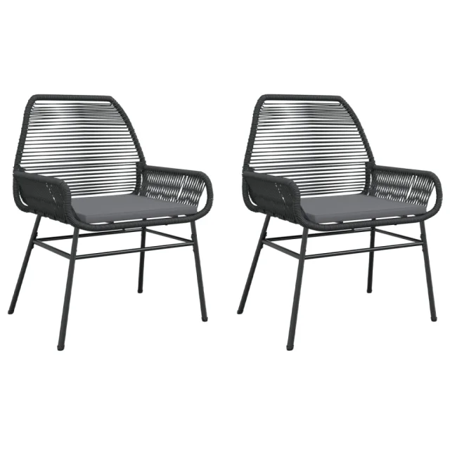 vidaXL Vrtni stoli 2 kosa z blazinami črn poli ratan
