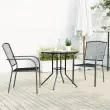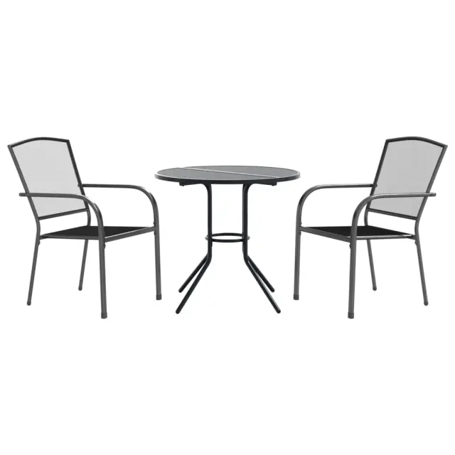 Ta komplet vrtnih stolov z elegantnim videzom je izjemen dodatek k vašemu trenutnemu zunanjemu in notranjemu bivalnemu prostoru. Prašno barvano jeklo: Ta vrtna barska garnitura je izdelana iz prašno barvanega jekla, ki je izredno trd in močan material. Ponuja trdnost in stabilnost. Prašni premaz na površini jekla ustvari zaščitno plast pred rjo, korozijo in obrabo.Praktična zasnova: Ti bistro stoli imajo naslonjala, ki vam lahko zagotovijo dodatno udobje, tako da lahko udobno sedite na stolih.Zložljiva funkcija: Stole lahko zložite enega na drugega in tako prihranite prostor.Mizna plošča iz mreže: Mrežasta mizna plošča ima čudovite vzorce in je primerna za odlaganje pijače, hrane in drugih potrebščin.Široka uporaba: Ta večnamenski set zunanjih stolov ima popolno obliko, ki se prilega vsakemu okolju v vaši hiši. Uporabljajo se lahko v kuhinji, jedilnici, dnevni sobi, na terasi itd.Potrebno sestavljanje: DaStol:Barva: AntracitnaMaterial okvirja: Prašno barvano jeklo z elektroforezno obdelavoDimenzije: 55 x 61 x 87 cm (Š x G x V)Širina sedeža: 40 cmGlobina sedeža: 45 cmVišina sedeža od tal: 44 cmVišina naslonjala za roke, merjena od tal: 64 cmMrežast dizajnOdporno na vremenske vplive in rjoNajvečja nosilnost (na sedež): 110 kgPriložena blazina: NeMiza:Barva: AntracitnaMaterial okvirja: Prašno barvano jeklo z elektroforezno obdelavoMaterial vijaka: Nerjaveče jekloMaterial opreme: Pocinkano jekloDimenzije mize: 80 x 72,5 cm (premer x V)Paket vsebuje:2 x Zložljiv vrtni stol1 x Miza 3283756