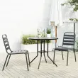 Ta komplet vrtnih stolov z elegantnim videzom je izjemen dodatek k vašemu trenutnemu zunanjemu in notranjemu bivalnemu prostoru. Prašno barvano jeklo: Ta vrtna barska garnitura je izdelana iz prašno barvanega jekla, ki je izredno trd in močan material. Ponuja trdnost in stabilnost. Prašni premaz na površini jekla ustvari zaščitno plast pred rjo, korozijo in obrabo.Udobno sedenje: Zunanji stol s sedežem iz letvic in ukrivljenim naslonjalom hrbet se prilega vašemu telesu.Zložljiva funkcija: Stole lahko zložite enega na drugega in tako prihranite prostor.Mizna plošča iz mreže: Mrežasta mizna plošča ima čudovite vzorce in je primerna za odlaganje pijače, hrane in drugih potrebščin.Široka uporaba: Ta večnamenski set zunanjih stolov ima popolno obliko, ki se prilega vsakemu okolju v vaši hiši. Uporabljajo se lahko v kuhinji, jedilnici, dnevni sobi, na terasi itd.Potrebno sestavljanje: DaStol:Barva: AntracitnaMaterial okvirja: Prašno barvano jeklo z elektroforezno obdelavoDimenzije: 42 x 63 x 84 cm (Š x G x V)Širina sedeža: 42 cmGlobina sedeža: 34,5 cmVišina sedeža, merjena od tal: 42 cmLetven dizajnOdporno na vremenske vplive in rjoNajvečja nosilnost (na sedež): 110 kgPriložena blazina: NeMiza:Barva: AntracitnaMaterial okvirja: Prašno barvano jeklo z elektroforezno obdelavoMaterial vijaka: Nerjaveče jekloMaterial opreme: Pocinkano jekloDimenzije mize: 80 x 72,5 cm (premer x V)Paket vsebuje:2 x Zložljiv vrtni stol1 x Miza 3283764