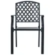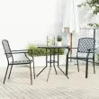 Ta komplet vrtnih stolov z elegantnim videzom je izjemen dodatek k vašemu trenutnemu zunanjemu in notranjemu bivalnemu prostoru. Prašno barvano jeklo: Ta vrtna barska garnitura je izdelana iz prašno barvanega jekla, ki je izredno trd in močan material. Ponuja trdnost in stabilnost. Prašni premaz na površini jekla ustvari zaščitno plast pred rjo, korozijo in obrabo.Praktična zasnova: Ti bistro stoli imajo naslonjala, ki vam lahko zagotovijo dodatno udobje, tako da lahko udobno sedite na stolih.Zložljiva funkcija: Stole lahko zložite enega na drugega in tako prihranite prostor.Mizna plošča iz mreže: Mrežasta mizna plošča ima čudovite vzorce in je primerna za odlaganje pijače, hrane in drugih potrebščin.Široka uporaba: Ta večnamenski set zunanjih stolov ima popolno obliko, ki se prilega vsakemu okolju v vaši hiši. Uporabljajo se lahko v kuhinji, jedilnici, dnevni sobi, na terasi itd.Potrebno sestavljanje: DaStol:Barva: AntracitnaMaterial okvirja: Prašno barvano jeklo z elektroforezno obdelavoDimenzije: 56 x 65 x 89 cm (Š x G x V)Širina sedeža: 38,5 cmGlobina sedeža: 46 cmVišina sedeža, merjena od tal: 42,5 cmVišina naslonjala za roke, merjena od tal: 65,5 cmMrežast dizajnOdporno na vremenske vplive in rjoNajvečja nosilnost (na sedež): 110 kgPriložena blazina: NeMiza:Barva: AntracitnaMaterial okvirja: Prašno barvano jeklo z elektroforezno obdelavoMaterial vijaka: Nerjaveče jekloMaterial opreme: Pocinkano jekloDimenzije mize: 80 x 72,5 cm (premer x V)Paket vsebuje:2 x Zložljiv vrtni stol1 x Miza 3283768