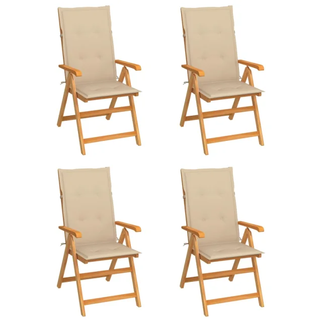 vidaXL Vrtni stoli 4 kosi z bež blazinami trdna tikovina