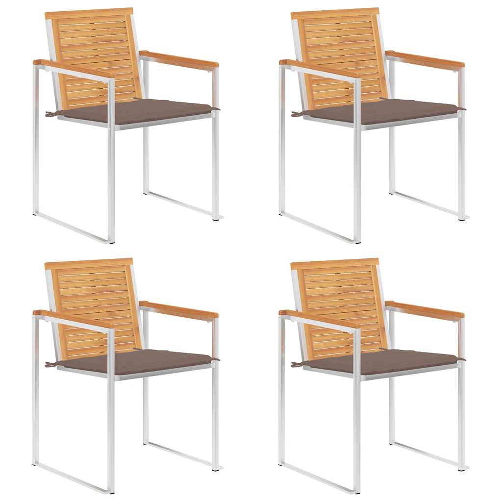 vidaXL Vrtni stoli 4 kosi z blazinami trdna tikovina