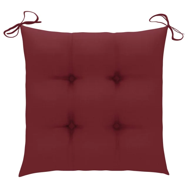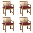 vidaXL Vrtni stoli 4 kosi z vinsko rdečimi blazinami trdna tikovina