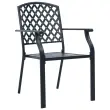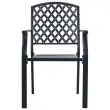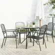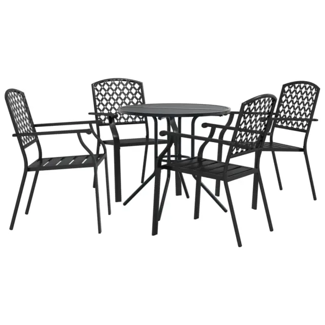 Ta komplet vrtnih stolov z elegantnim videzom je izjemen dodatek k vašemu trenutnemu zunanjemu in notranjemu bivalnemu prostoru. Prašno barvano jeklo: Ta vrtna barska garnitura je izdelana iz prašno barvanega jekla, ki je izredno trd in močan material. Ponuja trdnost in stabilnost. Prašni premaz na površini jekla ustvari zaščitno plast pred rjo, korozijo in obrabo.Praktična zasnova: Ti bistro stoli imajo naslonjala, ki vam lahko zagotovijo dodatno udobje, tako da lahko udobno sedite na stolih.Zložljiva funkcija: Stole lahko zložite enega na drugega in tako prihranite prostor.Mizna plošča iz mreže: Mrežasta mizna plošča ima čudovite vzorce in je primerna za odlaganje pijače, hrane in drugih potrebščin.Široka uporaba: Ta večnamenski set zunanjih stolov ima popolno obliko, ki se prilega vsakemu okolju v vaši hiši. Uporabljajo se lahko v kuhinji, jedilnici, dnevni sobi, na terasi itd.Potrebno sestavljanje: DaStol:Barva: AntracitnaMaterial okvirja: Prašno barvano jeklo z elektroforezno obdelavoDimenzije: 56 x 65 x 89 cm (Š x G x V)Širina sedeža: 38,5 cmGlobina sedeža: 46 cmVišina sedeža, merjena od tal: 42,5 cmVišina naslonjala za roke, merjena od tal: 65,5 cmMrežast dizajnOdporno na vremenske vplive in rjoNajvečja nosilnost (na sedež): 110 kgPriložena blazina: NeMiza:Barva: AntracitnaMaterial okvirja: Prašno barvano jeklo z elektroforezno obdelavoMaterial vijaka: Nerjaveče jekloMaterial opreme: Pocinkano jekloDimenzije mize: 80 x 72,5 cm (premer x V)Paket vsebuje:4 x Vrtni stol1 x Miza 3283769