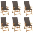 vidaXL Vrtni stoli 6 kosov s taupe blazinami trdna tikovina