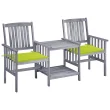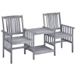 vidaXL Vrtni stoli s čajno mizico in blazinami trden akacijev les