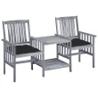 vidaXL Vrtni stoli s čajno mizico in blazinami trden akacijev les