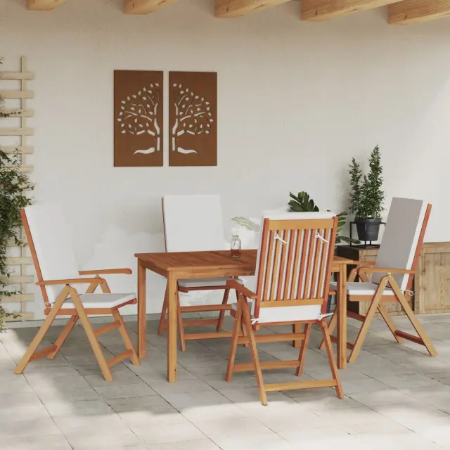 vidaXL Vrtni stoli Set 2 Kremno bela Trden tikov les, 100% poliester