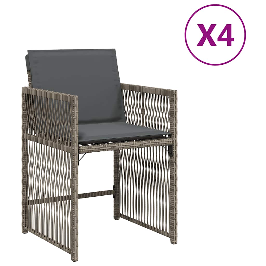 vidaXL Vrtni stoli z blazinami 4 kosi siv poli ratan