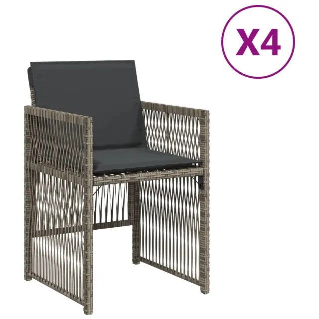 vidaXL Vrtni stoli z blazinami 4 kosi siv poli ratan