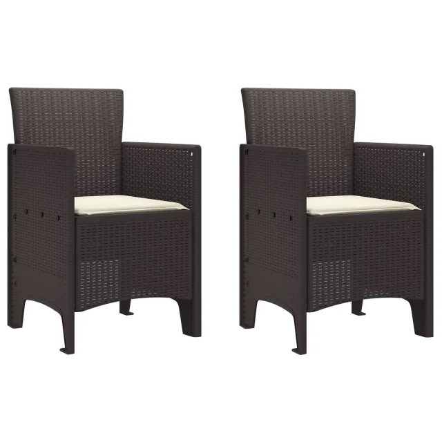 vidaXL Vrtni stoli z blazinami 2 kosa Rjava Poli Ratan
