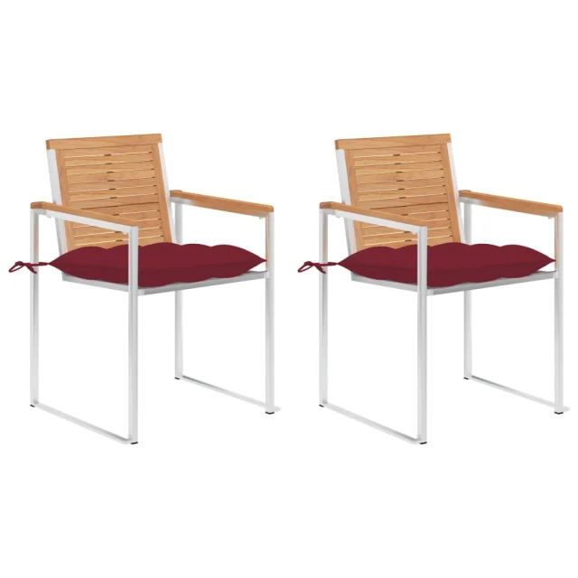 vidaXL Vrtni stoli z blazinami 2 kosa trdna tikovina in jeklo