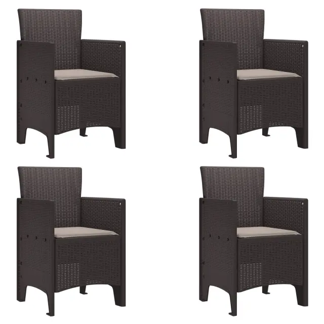 vidaXL vrtni stoli z blazinami 4 kosa Rjava Poli Rattan