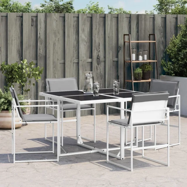 vidaXL Vrtni stoli z blazinami 4 kosi belo jeklo in tekstilen