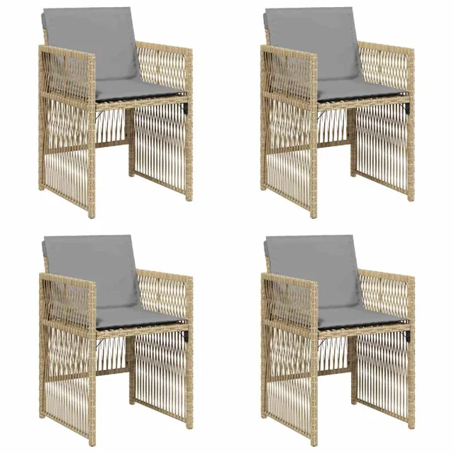 vidaXL Vrtni stoli z blazinami 4 kosi bež poli ratan
