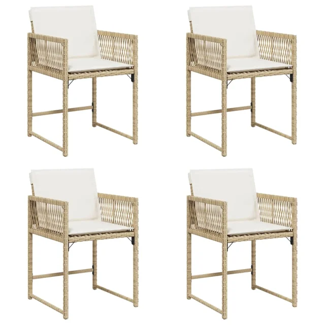 vidaXL Vrtni stoli z blazinami 4 kosi bež poli ratan