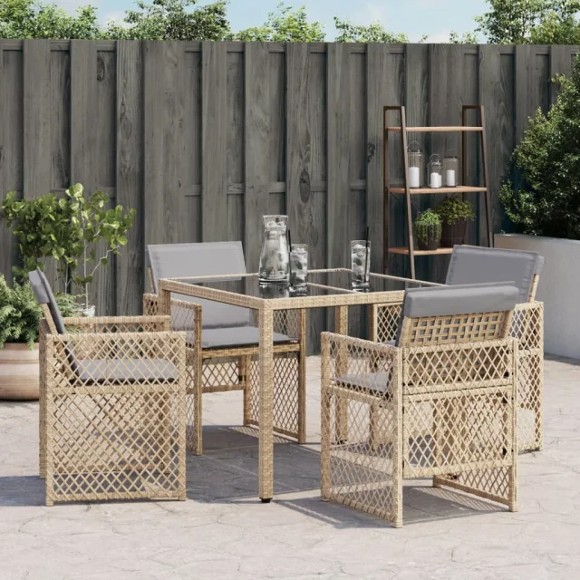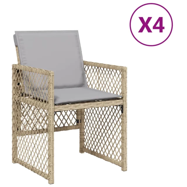 vidaXL Vrtni stoli z blazinami 4 kosi bež poli ratan