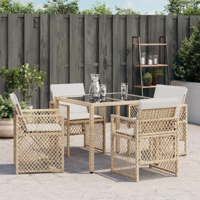 vidaXL Vrtni stoli z blazinami 4 kosi bež poli ratan