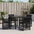 vidaXL Vrtni stoli z blazinami 4 kosi črn poli ratan