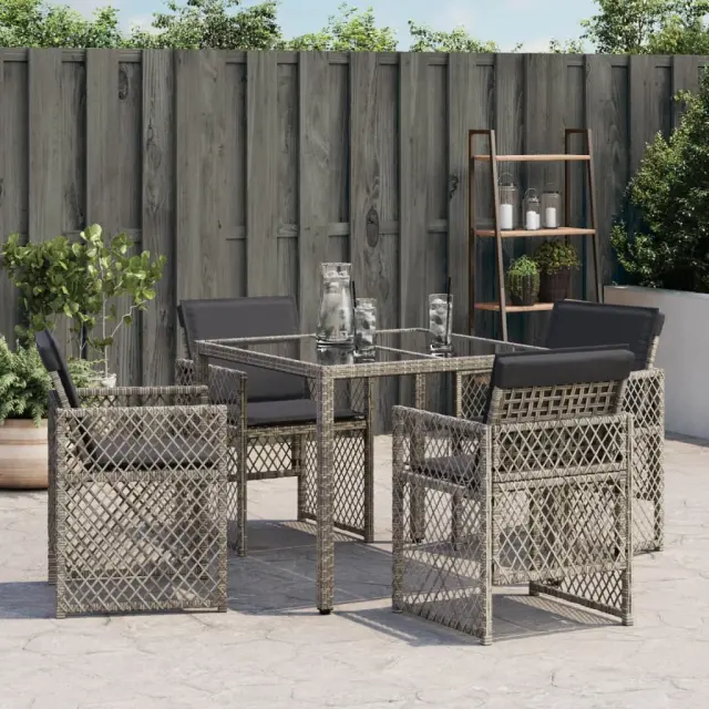 vidaXL Vrtni stoli z blazinami 4 kosi siv poli ratan