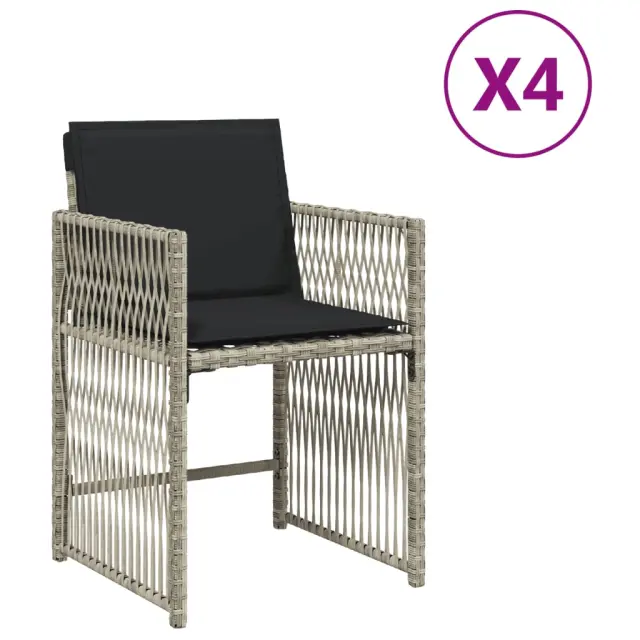 vidaXL Vrtni stoli z blazinami 4 kosi svetlo siv poli ratan